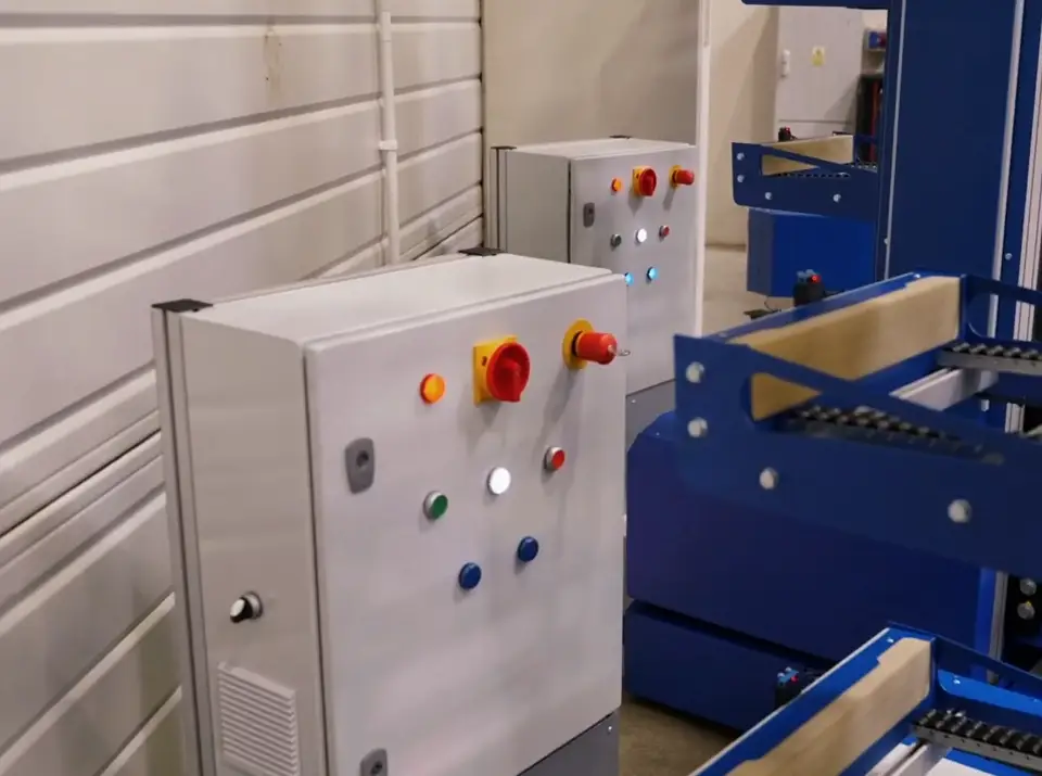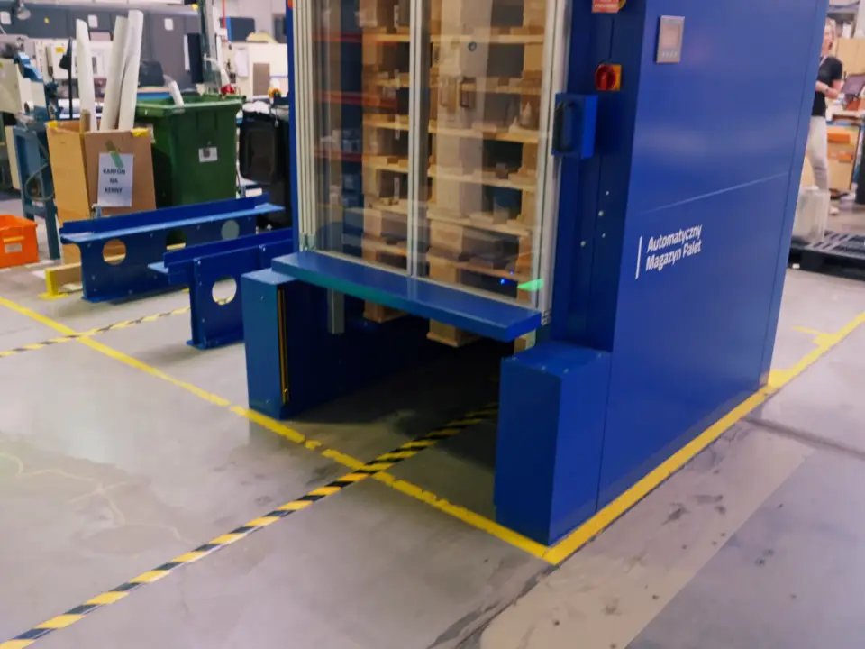 The automatic pallet warehouse is a modern solution for storing EURO 1 pallets, which works seamlessly with the IntraBot Lift mobile robot and a forklift. The system automatically manages the pallet stack, enabling their smooth collection and distribution. The mobile robot collects single, empty pallets and transports them to a designated logistics station, eliminating the need for manual handling. This intelligent solution improves the flow of pallets, increases operational efficiency and minimizes the risk of errors in the warehouse.