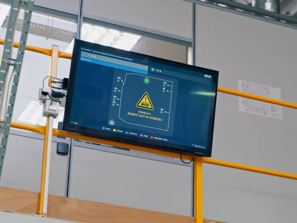 Andons and sensors are key elements of the infrastructure that ensure smooth communication between the system and the factory. They inform employees about current operations, synchronizing the team’s actions with the automated missions of mobile robots. Thanks to them, operators have full control over the processes taking place on the production floor, receiving real-time notifications about the status of tasks, robot movements and key logistics events. It is an intelligent solution that increases efficiency, improves safety and eliminates downtime.