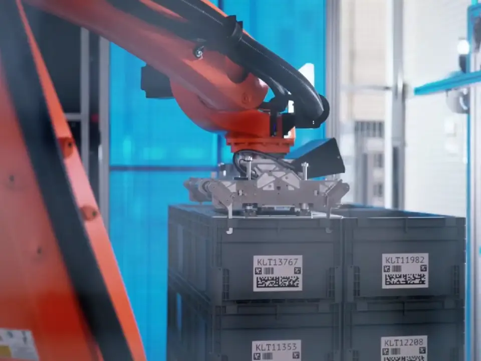 The device uses an advanced robotic arm with a specially designed gripper and a proprietary vision system that ensures precision and full control over the process. It allows simultaneous unloading of two pallets onto two buffers, maximizing the efficiency of the operation. The built-in vision system on the robot arm allows for the collection of containers without the need for their perfect positioning, which increases flexibility and smooth operation. An additional scanning module identifies each container that appears in the system, guaranteeing full control over its location and optimizing the management of warehouse space.