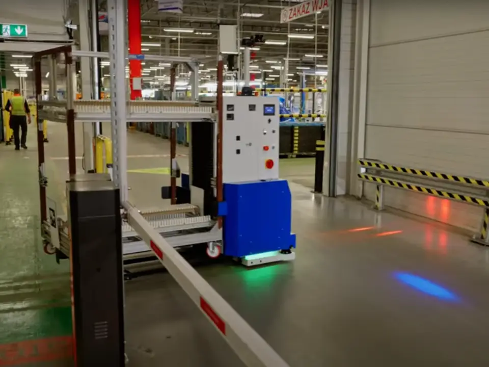 Our intralogistics system, based on mobile robots, connects with existing ERP, MES and WMS solutions and IoT solutions, ensuring smooth data exchange and full process automation. By using API.REST, PROFIBUS or MODBUS, we integrate with the client’s infrastructure, enabling the triggering of automatic missions and logistics orders without interfering with the existing IT ecosystem. This is an intelligent solution that increases operational efficiency and improves logistics management in modern factories.